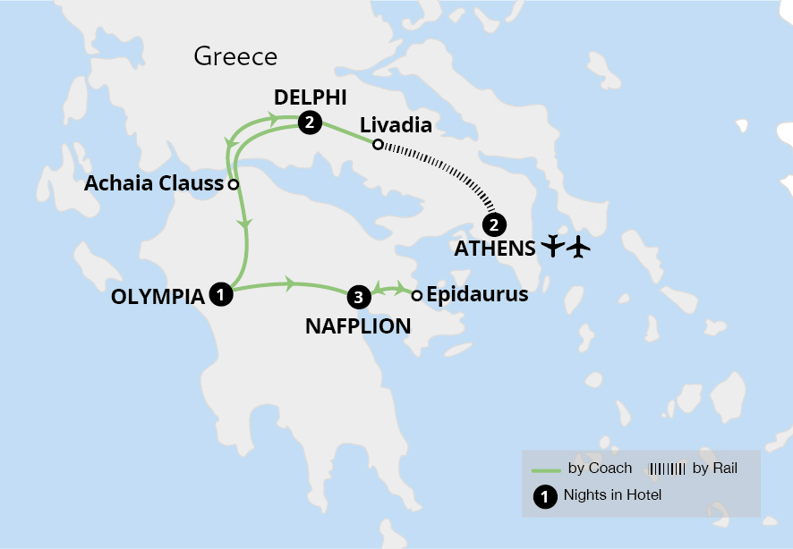 Explore a wealth of historic gems on this journey through Greece and the Peloponnese. Beginning with a two-night stay in Athens, enjoy a guided tour of the magnificent Acropolis, viewing the Parthenon and the jaw-dropping treasures of the museum. Uncover iconic sites overflowing with Greek mythology in Delphi and discover the birthplace of the...